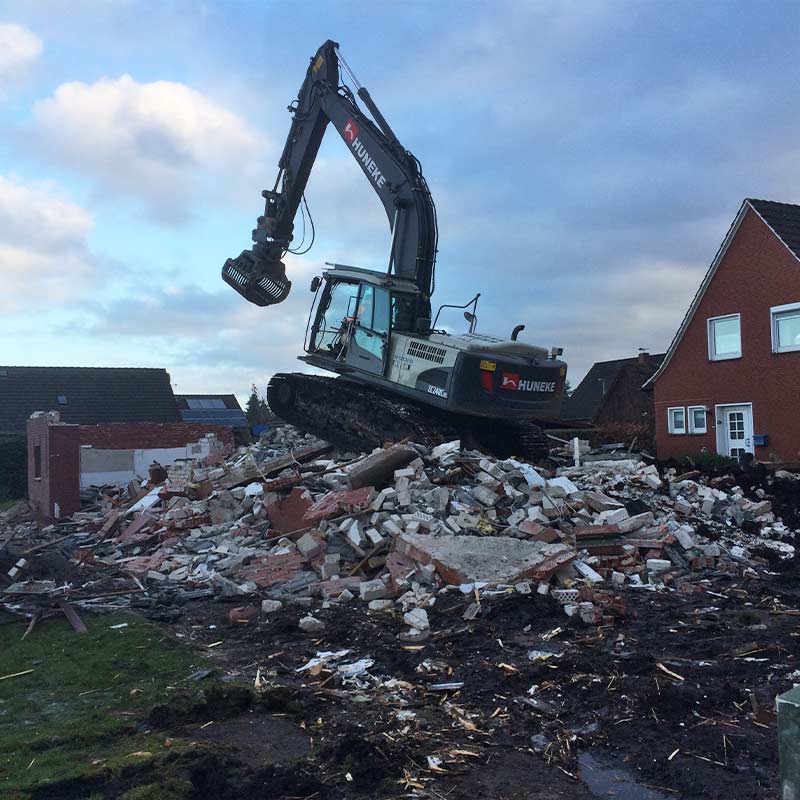 Unsere Leistung erhalten Sie auch als Komplettpaket: Dafür bieten wir Ihnen über den fachgerechten Abbruch hinaus die Entkernung, Materialaufbereitung, Entsorgung und Verfüllung an. So schaffen wir Platz für Ihre Visionen und Neubauprojekte in und um Ostfriesland.