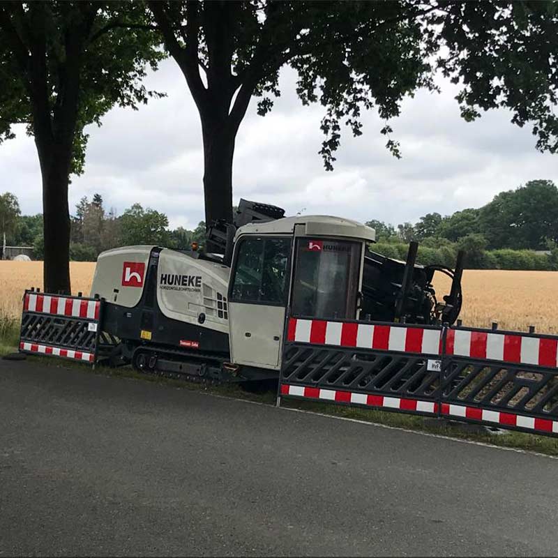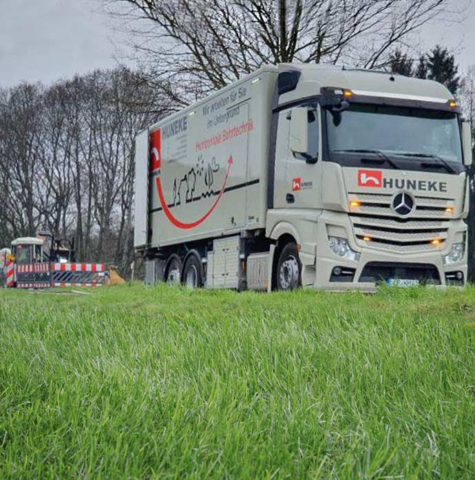 Im Bereich Horizontalbohrtechnik (kurz HDD – Horizontal Directional Drilling) haben wir seit 1994 weitreichende Erfahrungen gesammelt. Als Experte für das Horizontalspülbohrverfahren verlegen wir Rohrleitungen unterirdisch, also ohne dabei über die Verlegelänge einen Graben auszuheben. Unsere Horizontalspülbohranlage bohrt zwischen zwei Gruben einen unterirdischen Kanal und zieht dabei ein oder mehrere Produkt- oder Leerrohre ein. Die Bohranlagen arbeiten mit Zug- und Schubkraft, Drehmoment (Rotation), Spülung und dynamischer Schlagkraft. Das HDD-System besteht aus einer Horizontalspülbohranlage und einem LKW mit einer Bentonitmischanlage.
