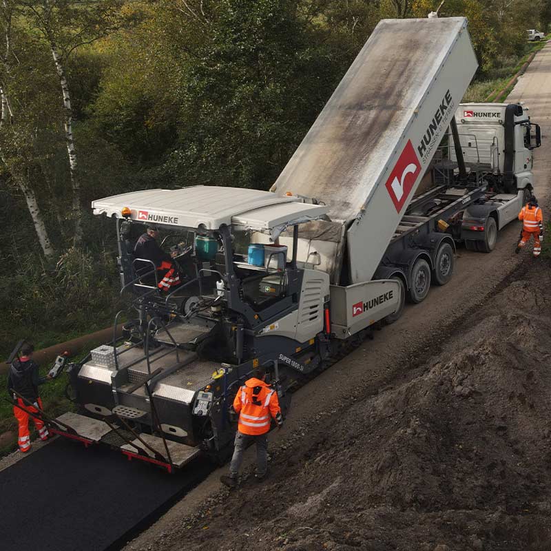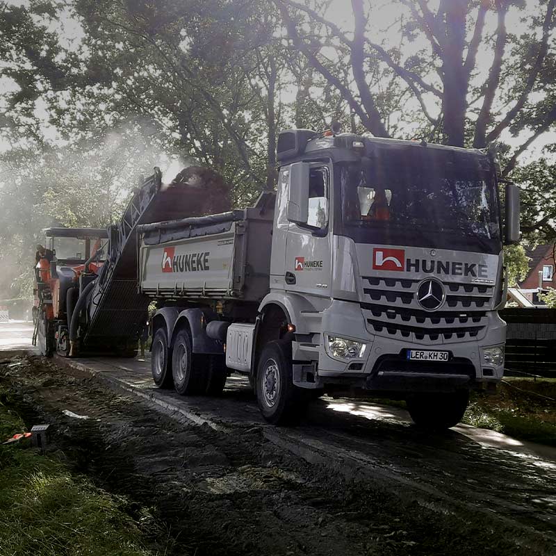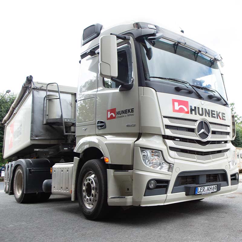 Mit unserem Huneke Fuhrpark sind wir ideal ausgestattet für sämtliche Dienstleistungen im Straßen- und Tiefbau. Dabei setzen wir auf hohe Leistungsfähigkeit, gepflegte Maschinen und moderne Spezialgeräte. Egal ob kleines oder großes Bauvorhaben – unser Fuhrpark ist immer einsatzbereit. Unsere firmeneigene Werkstatt sorgt dafür, dass es rund läuft: Fachkundiges Werkstattpersonal kümmert sich stetig um die Wartung und Instandsetzung aller Maschinen, LKW und Geräte. Unsere Corporate Identity hat einen hohen Wiedererkennungswert.