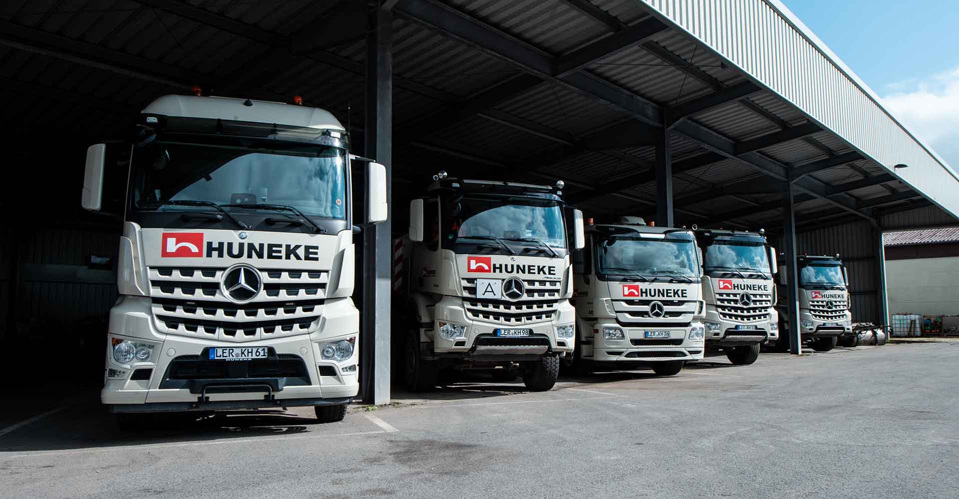 Mit unserem Huneke Fuhrpark sind wir ideal ausgestattet für sämtliche Dienstleistungen im Straßen- und Tiefbau. Dabei setzen wir auf hohe Leistungsfähigkeit, gepflegte Maschinen und moderne Spezialgeräte. Egal ob kleines oder großes Bauvorhaben – unser Fuhrpark ist immer einsatzbereit. Unsere firmeneigene Werkstatt sorgt dafür, dass es rund läuft: Fachkundiges Werkstattpersonal kümmert sich stetig um die Wartung und Instandsetzung aller Maschinen, LKW und Geräte. Unsere Corporate Identity hat einen hohen Wiedererkennungswert.
