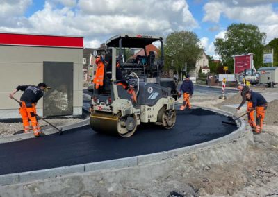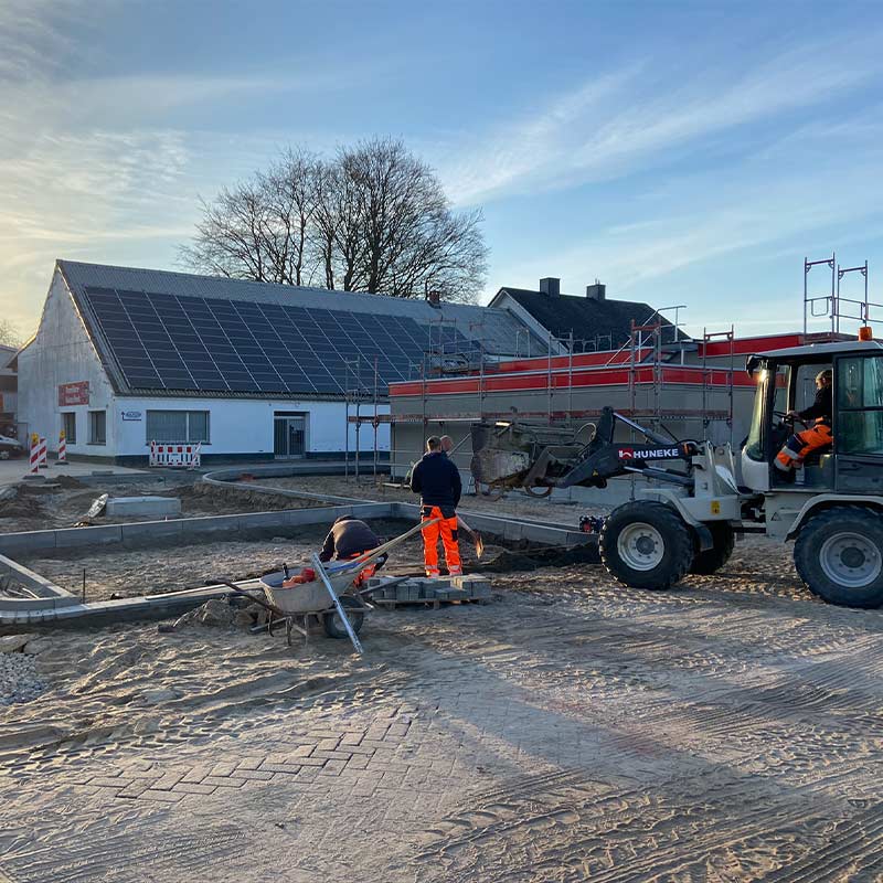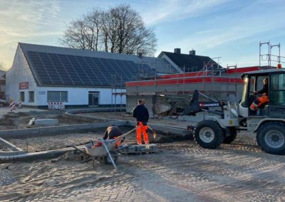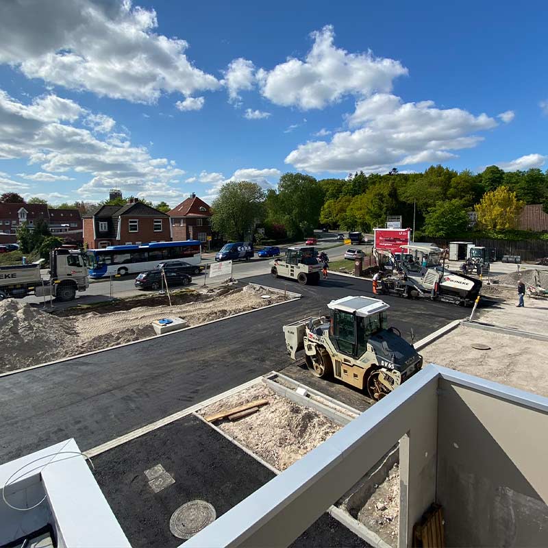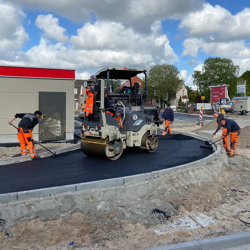 Zudem haben wir eine neue Entwässerung hergestellt und Zufahrtsmöglichkeiten durch eine Bordsteinabsenkung im öffentlichen Bereich des Geh- und Radweges geschaffen. Abschließend hat unser Team Oberflächen im Bereich der Parkplätze gepflastert und die Zufahrtsbereiche sowie den Drive-In asphaltiert.